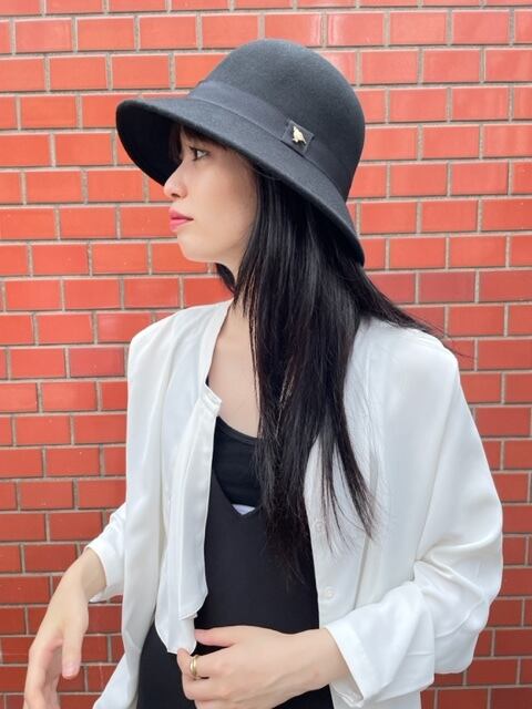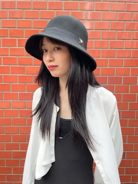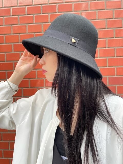 グログランが巻かれたフェルトボーラーハットです。見た目小ぶりなボーラーハットです。