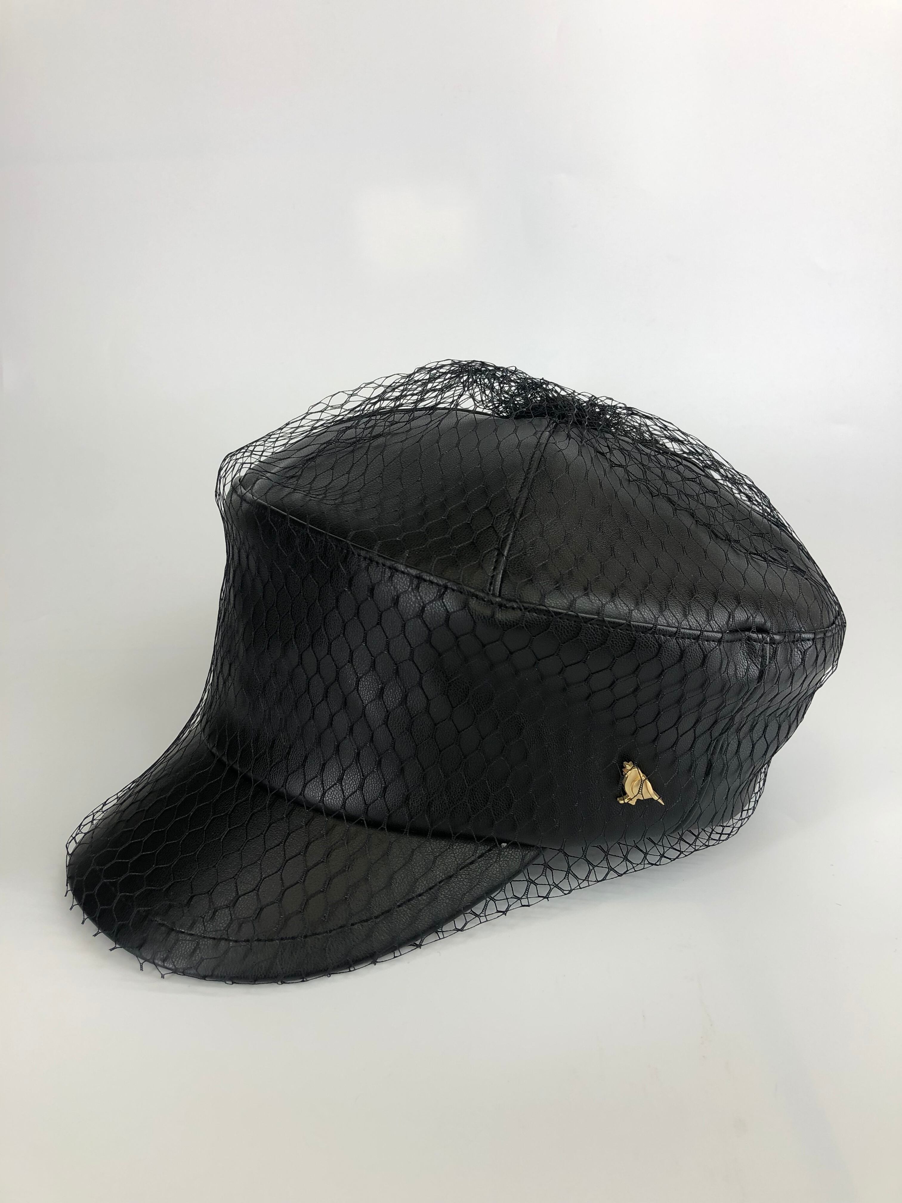 UC-093 FAUX LEATHER TULLE SIMPLE CASQUETTE